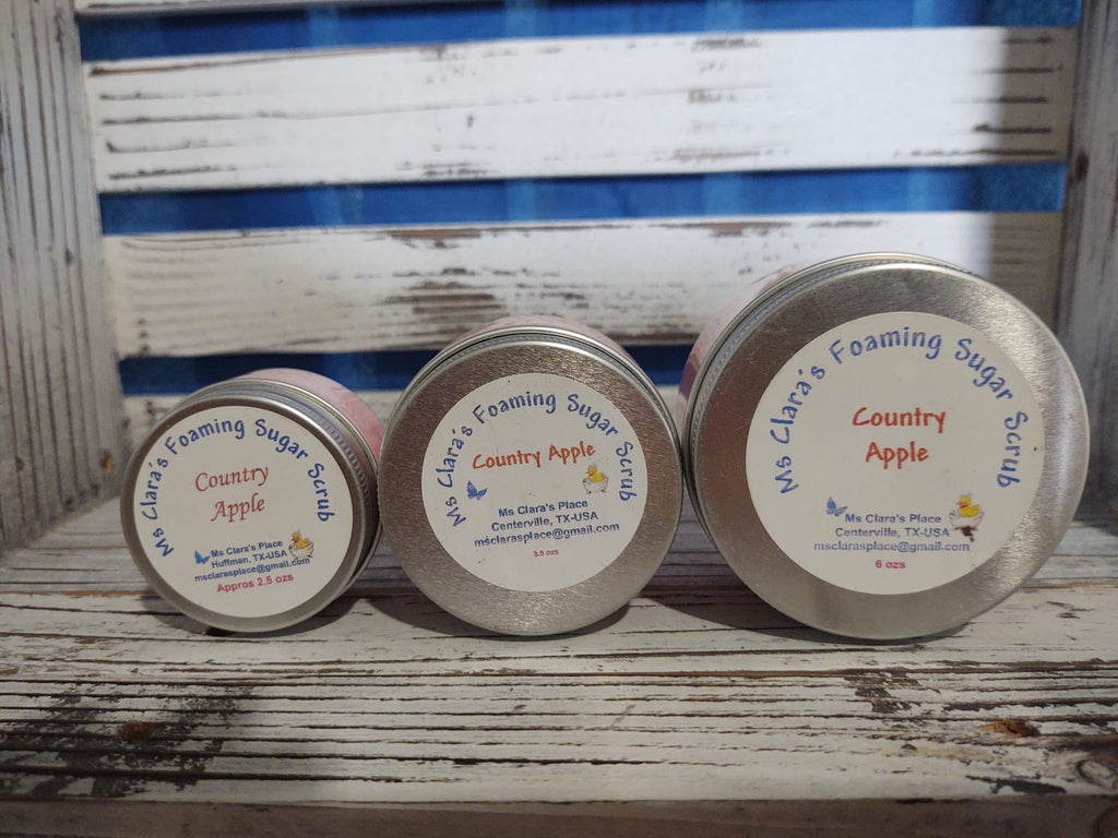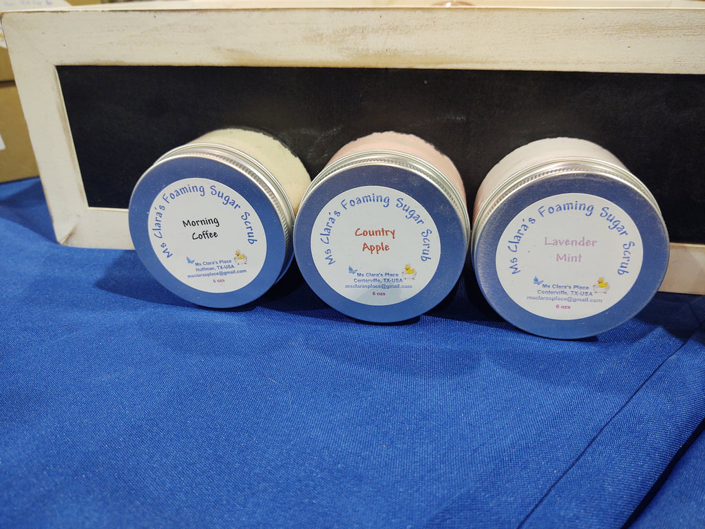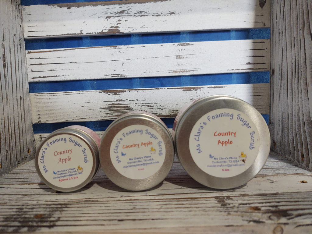 Ingredients: Creamy soap base, sugar, Shea butter, natural preservative, bentonite clay, fragrance and mica for color.